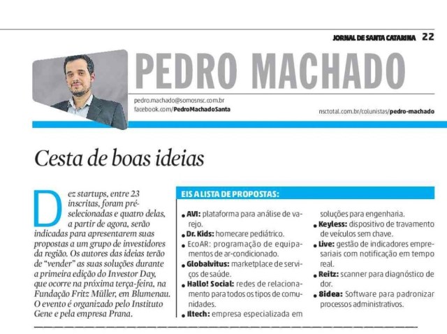 O colunista Pedro Machado publicou no Jornal de Santa Catarina: